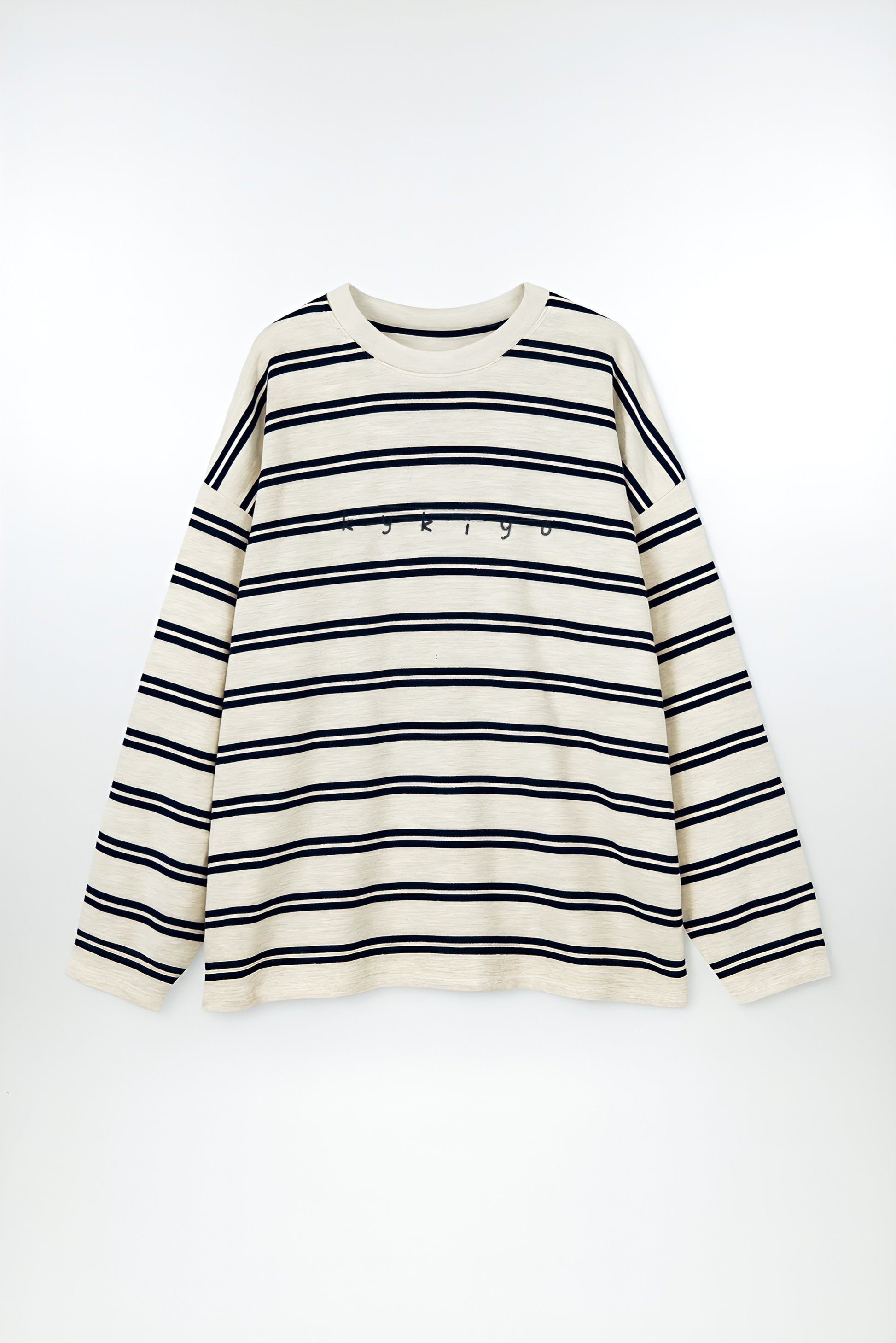 Широкий лонгслів в смужку з принтом з якісного трикотажу